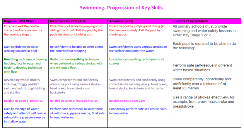 Swimming Progression of key skills