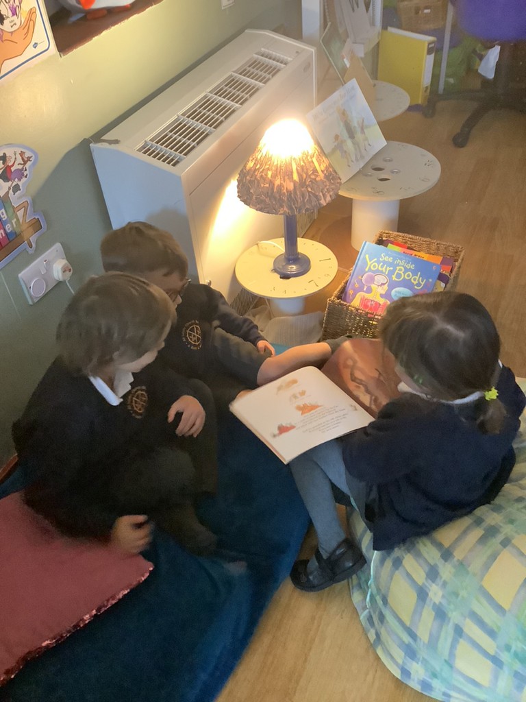 Every day our children take part in an adult led Literacy session where we read a range of high-quality texts and complete various activities aimed to develop our children's comprehension and knowledge of story structure.